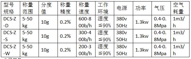 全自動磷銨定量包裝秤參數: